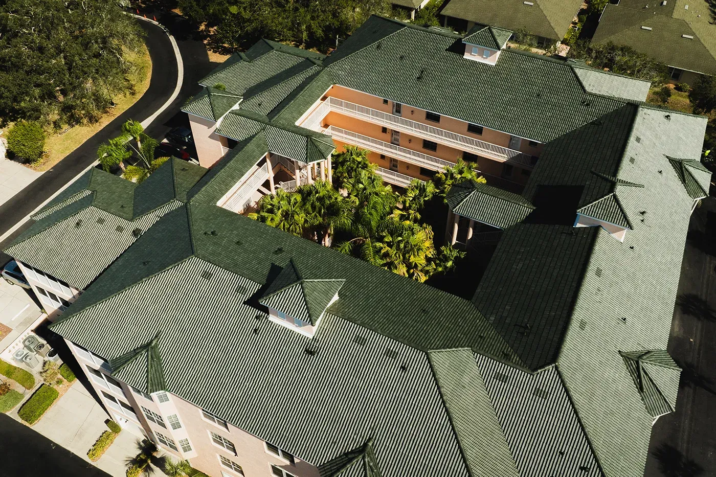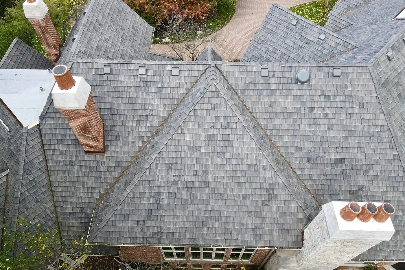 Below are examples from Brava to showcase their Slate, Cedar Shake, and Spanish Tile, installed on residential and commercial roofs.
